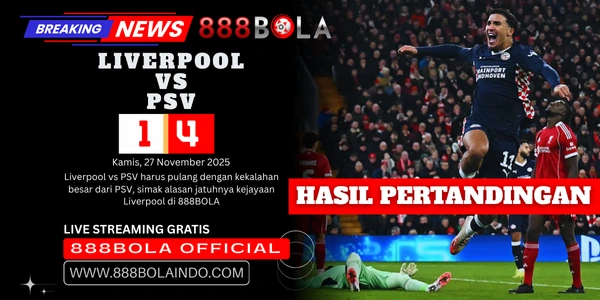 Laga besar Liverpool vs PSV menjadi salah satu laga yang sangat menari . Hasil Liverpool vs PSV adalah 1-4 membuktikan bahwa pentingnya efektivitas dalam sepak bola. PSV bermain lebih agresif, disiplin, dan produktif. Simak seluruh rekap pertandingan lainnya yang disajikan oleh 888BOLA Official. Jadwal bola terupdate dan akses live streaming gratis dapat diakses dengan link alternatif 888BOLA dan layanan 888BOLA Live Stream.